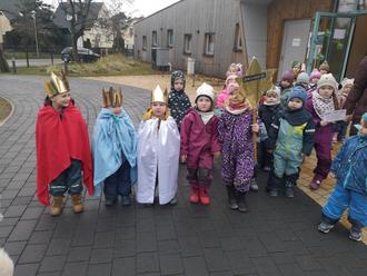 Mit dem Lied: „Stern über Bethlehem“ und guten Wünschen für das neue Jahr segneten die drei Könige, Joao`, Bo und Fritz unsere Kita und das Verwaltungsgebäude im traditionell, christlichem Sinne.