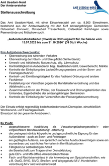 „Außendienstmitarbeiter (m/w/d) im Ordnungsamt für die Saison vom