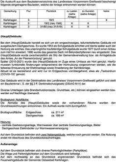 Die Auskunft aus dem Baulastenverzeichnis des Landkreises Vorpommern-Greifswald bescheinigt folgende eingetragene Baulasten, welche der Anlage entnommen werden können: