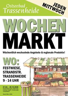 Die Gemeinde Trassenheide hat ab 01.04.2026 wieder einen Wochenmarkt organisiert.