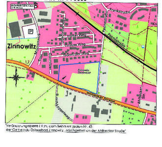 Die Gemeindevertretung Ostseebad Zinnowitz beschließt die Satzung über eine Veränderungssperre i.V.m. der Aufstellung des Bebauungsplanes Nr. 43 „Mischgebiet an der Ahlbecker Straße" mit folgendem Inhalt:
