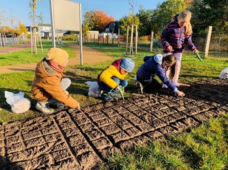 Gemeinsam mit dem Seniorenbeirat steckten die SchülerInnen der Klasse 2a und Frau Bandt im Herbst Osterglockenzwiebeln, so dass sich alle Einwohner und Gäste unseres Ortes im Frühjahr an diesem wundervollen Blütenmeer erfreuen konnten. Weitere Pflanzaktionen sind für den Herbst schon wieder geplant.