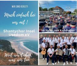 Wir, der Shantychor der Insel Usedom, haben im Jahr 2024 unser 15-jähriges Gründungsjubiläum feiern können. Der Altersdurchschnitt ist seit der Gründung naturgemäß stark angewachsen. Der „Zahn der Zeit“ ist an manchem Shantysänger leider nicht vorbei gegangen. So ist es nun aber an der Zeit sich mit „jungen, dynamischen Musikern und Sängern“ oder die sich dafür halten, zu verstärken. Wer lernt oder spielt zum Beispiel gern eine Bassgitarre und sucht noch nach einer Bestätigung um das Gelernte zu vertiefen? Oder wer verspürt Lust mit seinem Akkordeon die Sänger des Shantychores zu unterstützen? Auch Schüler/ Absolventen der Musikschule in Wolgast sind mit ihren Instrumenten bei uns gern gesehen.