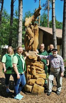 „Die alte, massive Eiche sollte wieder lebendig werden. Für meinen Vorgarten ist die Skulptur viel zu groß geworden und ich freue mich, wenn sie auf dem Standort am Campingplatz nun wesentlich mehr Gäste erfreut, als in meinem Garten.“
