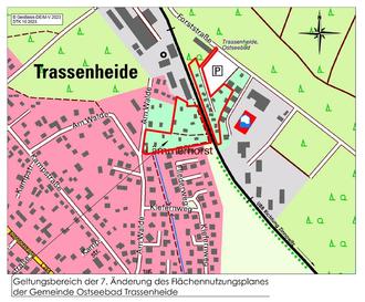 Für folgende Grundstücke hat die Gemeindevertretung des Ostseebades Trassenheide in der öffentlichen Sitzung am 05.06.2024 die Aufstellung der 7. Änderung des Flächennutzungsplanes der Gemeinde Ostseebad Trassenheide beschlossen:
