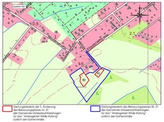 hat die Gemeindevertretung des Ostseebades Karlshagen in der öffentlichen Sitzung am 08.06.2023 die Aufstellung der 1. Änderung des Bebauungsplanes Nr. 31 für das „Wohngebiet Wilde Hütung“ südlich der Gartenstraße beschlossen.