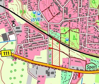Der Siedlungsbereich ist in seinem nördlichen Teil, der bis an das Plangebiet heranreicht, geprägt von einer Siedlungsstruktur bestehend aus Einfamilienhäusern, Mehrfamilienhäusern sowie Kleingartenparzellen. Das Plangebiet selbst stellt eine städtebauliche Brachfläche innerhalb des baulichen Zusammenhanges dar. Das unbebaute und ungenutzte Freigelände bietet ein Potenzial für die Entwicklung des Ortes in Bezug auf den Zuwachs an Wohnungsbau. Auf der genüberliegenden Straßenseite der B 111 befindet sich ein gewerblich geprägtes Gebiet, bestehend aus Kleinbetrieben, einem Landschaftsbau- sowie einem Forstwirtschaftsbetrieb.