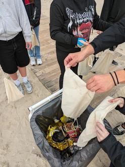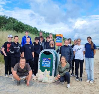 Anfang Juli griff die Heinrich-Heine-Schule das Thema als Umweltprojekt im Fach Biologie mit auf. An zwei Tagen begaben sich die Schüler der neunten Klassen in Begleitung ihrer Lehrerin Denise Kronenfeld mit Jutebeuteln ausgerüstet in die Dünen und an den Strand: Zahllose Zigarettenreste, Plastiktüten, Flaschen, Luftballons, verunglückte Drachen und Kleidung gehörten u. a. zur „Ausbeute“ der zweistündigen Sammelaktion, die fast zwei Mülltonnen füllte.