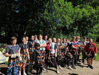 Im Juni unternahmen wir einen Ausflug zum Kletterwald in Neu Pudagla. Zunächst gab es eine ausführliche Eiweisung seitens des Kletterwaldteams. Wir wurden mit einem Klettergurt und Sicherungsset gesichert und haben erst einen Testparcour in Bodennähe absolviert. Danach konnten wir auf die verschiedenen Parcours klettern, dabei mussten wir in luftiger Höhe balancieren, schwingen oder uns hängend abseilen. Es war eine coole Möglichkeit, die eigene Muskulatur und das Gleichgewicht zu trainieren, mit Ängsten umzugehen und eigene Grenzen zu erfahren. Mit Hilfe von Seilen kletterten wir von einer Plattform zur nächsten, von einem Baum zum anderen. Die 2,5 Stunden verliefen wie im Fluge.