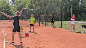 Dieter Büge als ehrenamtlicher Nachwuchstrainer des Vereins hatte sich dafür einige tolle „Spielchen“ ausgedacht. Auch die relativ neue Ballmaschine wurde eingesetzt.