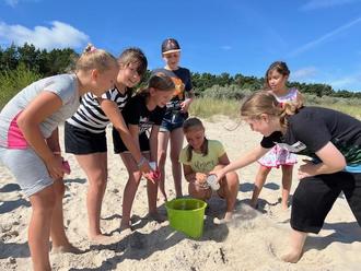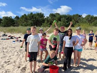Bei schönstem Sonnenschein wanderten die dritten Klassen der Grundschule Zinnowitz an den Strand. Gemeinsame Spiele, teambildende Maßnahmen sowie soziales Lernen standen auf dem Stundenplan.
