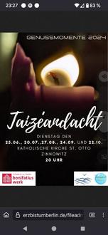 Anmeldung bis einen Tag vorher unter: saskia.stabenow@erzbistumberlin.de, 01511-7772693 oder 03834-57350.