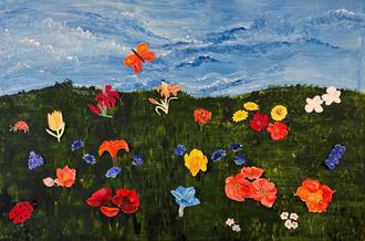 Beim kreativen Malnachmittag mit „Inselpinsel“ entstand das wundervolle Bild „Bunte Sommerwiese“, welches jetzt den Saal in unserer Begegnungsstätte „Kiek in“ verschönert.