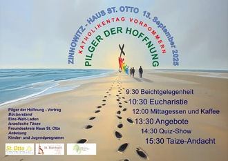 das Motto des Heiligen Jahres lautet „Pilger der Hoffnung“. Papst Franziskus hat es ausgerufen, um in Zeiten von Kriegen und globalen Krisen eine Zeit der Besinnung und Erneuerung zu schaffen. „Pilger der Hoffnung“ ist auch das Thema des diesjährigen Katholikentages. Es werden Menschen aus allen Teilen Vorpommerns nach Zinnowitz „pilgern“, um gemeinsam für Verständnis, Einsicht und Hoffnung zu beten. Lassen Sie sich inspirieren und seien Sie dabei.