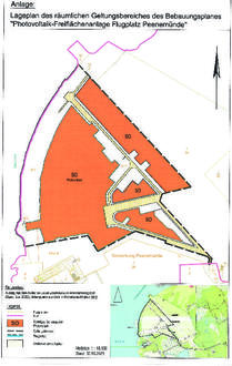 Gemäß § 8 Abs. 2 BauGB sind Bebauungspläne aus dem Flächennutzungsplan zu entwickeln. Das Plangebiet im Flächennutzungsplan der Gemeinde Peenemünde ist nicht als Sondergebiet „Photovoltaik“ sondern als „Konversionsfläche“ bzw. teilweise als „Grünfläche“ ausgewiesen.