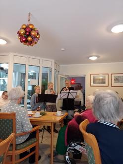 Das Nikolausfest wurde musikalisch von Frau Naßt, Wisgard und Emil umrahmt. Auf Flöte und Keyboard erklangen Weihnachtslieder, sowie wunderschöne Musik aus der Barockzeit. Alle waren begeistert von den zauberhaften Klängen zur Kaffeezeit und bedanken sich nochmals bei den Musikanten.
