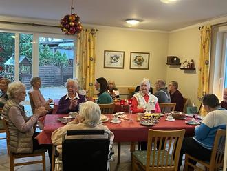 Silvester traf sich eine kleine Gruppe im dekorierten Aufenthaltsraum, um bei Kaffee und Berlinern das Jahr gemeinsam ausklingen zu lassen. Alle plauderten über so manche lustige Anekdote aus der Vergangenheit und eine Bewohnerin hatte auch einiges zum Vorlesen mitgebracht. Nun sind alle gespannt, was das vor uns liegende Jahr bringt und freuen sich schon auf das gemeinsame Neujahrsfrühstück.