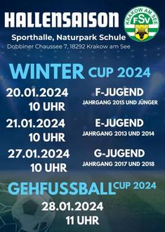 im Januar ist es wieder so weit - der Junioren WinterCup 2024 steht in den Startlöchern. An drei Turniertagen (20./21. & 27. Januar) Spielen unsere Nachwuchskicker ihre Hallenturniere vor heimischer Kulisse mit insgesamt 11 Gastvereinen.
