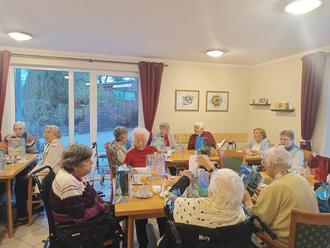Zum Abschluss des Jahres fanden sich unsere Bewohner noch einmal zusammen, diesmal zeigte sich der Speiseraum im bunten Gewand. Girlanden, Luftschlangen, Knallbonbons, Glücksklee. Dazu der traditionelle Silvesterberliner und ein kleines Feuerwerk machten den Jahresausklang perfekt.