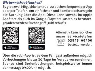 Am 17.10.2024 haben der Landkreis Rostock und Rebus eine Infoveranstaltung zum Rufbus Rubi durchgeführt. Der Rufbus ist eine Ergänzung zum öffentlichen Nahverkehr und ab sofort im ganzen Landkreis im Einsatz. Infoblätter werden wir in unseren öffentlichen Haltestellen aushängen.