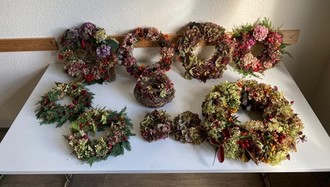 Herbstbasteln in der Bürgerbegegnungsstätte: Am 18. Oktober bastelten sieben Frauen aus herbstlichen Naturprodukten verschiedene Kränze.