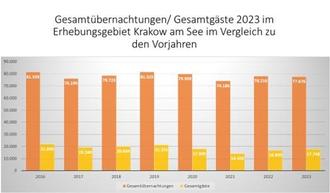 Wie haben sich nun die Gästezahlen konkret in Krakow am See 2023 entwickelt, im Vergleich zu den Vorjahren?