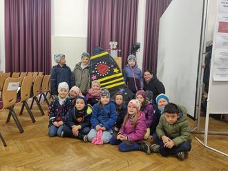 Gespannt, was nun passiert, blickten alle zur Bühne. Die Weltraummaus reiste mit ihren Freunden von Planet zu Planet und lernten dort neue Freunde kennen. Die Kinder hatten sichtlich Spaß am Mittanzen und Zuschauen. Am Ende wurde mit der Weltraummaus ein Erinnerungsfoto gemacht und es ging für unsere Vorschulkinder mit dem Bus wieder zurück in die Kita.