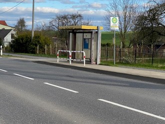 Sicherheitsbarriere vor den Bushaltestellen in Dorfmitte Raden