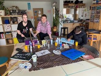 Schon zum zweiten Mal waren die Kinder und Jugendlichen der AWO-Yellow fun box mit Michelle Viehstädt, Leiterin der Yellow Fun Box, Inga Schwarz aus dem Fachbereich Integration und Antje Helm-Michalek, Beteiligungsmoderatorin für den Landkreis Rostock verabredet, um die Schilder für einen Kinderrechtegarten zu gestalten.