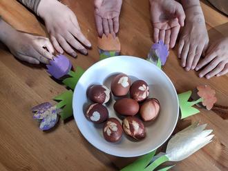 Beim Färben mit Zwiebelschalen entstanden in der DRK-Kita Schneckenhaus ganz tolle Ostereier