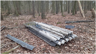 Bereits an zwei Stellen im Forstrevier Bossow wurden illegal Asbestplatten und Regenrinnen im Wald entsorgt. Der Fundort bei der Ortschaft Bossow ist leider nicht der einzige Ort an dem der Baumüll achtlos in den Wald geworfen wurde. Auch in den Schultannen nahe des Van der Valk-Resorts Linstow gibt es ein derartiges Umweltdelikt. Diese abgelagerten Stoffe können auch nach langer Zeit nicht abgebaut werden, sie gelten als schadstoffhaltige Abfälle und stellen eine negative dauerhafte Beeinträchtigung dar und gehören fachgerecht entsorgt.