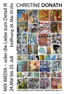 Empfehlen können wir im Mai noch die Ausstellungseröffnung „MIX MEDIA - oder die Liebe zum Detail III“ von Christine Donath. Termin: 24.05. um 10.00 Uhr.
