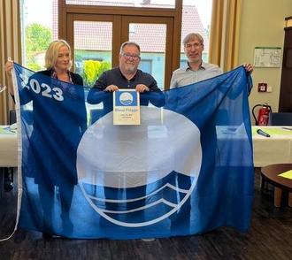 Am 02.06.2023 war es soweit. Die Deutsche Gesellschaft für Umwelterziehung verlieh das Gütesiegel „Blaue Flagge. Bereits zum 25. Mal wurde diese Auszeichnung an unsere Badeanstalt verliehen. Somit ist unsere Badeanstalt das einzige Binnenbad in Deutschland, dass diese Anerkennung in diesem Maße erhalten hat. Zusammen mit Frau Ramona Roll hat Herr Hilmar Fischer, Pächter der Badeanstalt, die Auszeichnung entgegengenommen. Dank an Herrn Hilmar Fischer, der mit viel Arbeit diese Auszeichnung erst möglich macht.