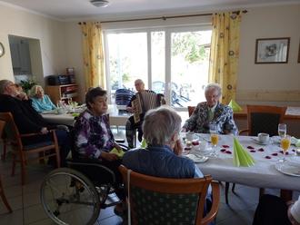 Am vergangenen Mittwoch fand unsere Geburtstagsfeier des Monats statt. Nach Kaffee, Torte, Sekt bzw. Saft spielte Frau Barz auf dem Akkordeon bekannte Schlager und Volkslieder.