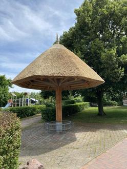 Der Wetterschutzpilz am Burgplatz musste, aufgrund des desolaten Zustandes im Bereich des Sockels komplett demontiert werden.