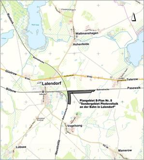 Die Gemeinde hat die von der Gemeindevertretung am 02.04.2025 als Satzung beschlossene Satzung über den Bebauungsplan Nr. 8 "Sondergebiet Photovoltaik an der Bahn in Lalendorf" der Gemeinde Lalendorf bei der höhere Genehmigungsbehörde, Landkreis Rostock zur Prüfung und Genehmigung vorgelegt.