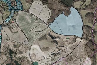 | Das direkte Umfeld des Vorhabengebietes wird v.a. durch landwirtschaftlich genutzte Flächen und Wald geprägt. Im Norden befindet sich der Krevtsee, im Süden schließt sich das Abbaufeld des Kieswerkes Langhagen an das Vorhabengebiet an. |