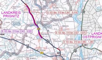 Der Landesbetrieb Straßenwesen führt ab dem dritten Quartal 2025 umfangreiche Bauarbeiten an der Bundesstraße B 103 in mehreren Abschnitten zwischen Gantikow bis Vehlow durch.