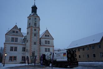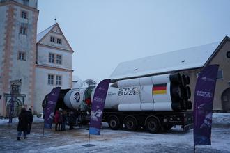 Ein ganz besonderer Anblick bot sich am Freitag, dem 30. Januar 2026, auf dem Schlossplatz in Demerthin: Vor der historischen Kulisse des Schlosses stand plötzlich ein futurisch anmutender Truck in Raketenform, der SPACEBUZZ ONE. Möglich gemacht hatte diesen außergewöhnlichen Besuch Schulleiterin Frau Brümmer, die sich mit der Grundschule Demerthin für das Bildungsprojekt beworben hatte und den Zuschlag erhielt.