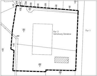 Das ca. 1,89 ha große bebaute Gebiet umfasst die Flurstücke 52/3 (teilweise), 56/12, 56/13, 56/14, 280 (teilweise), 281/1, 281/2 (teilweise) und 282/2 (teilweise) der Flur 2 Gemarkung Dersekow. Die östliche Grenze des Geltungsbereiches bildet die Landesstraße L 261, Geschwister-Scholl-Straße; im Norden bildet der Bismarckweg, eine örtliche Mischverkehrsfläche die Geltungsbereichsgrenze. Im Norden und Osten grenzen Bauflächen an und im Westen und Süden landwirtschaftliche Flächen.