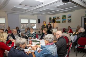 Am 13. Dezember luden die Mitglieder des Kulturausschusses die Senioren der Gemeinde zur letzten Kulturveranstaltung in diesem Jahr ein. Um 15 Uhr fanden sich ca. 50 gut gelaunte Senioren zur diesjährigen Weihnachtsfeier ein. Viele fleißige Helfer vom Kulturausschuss haben das Dörphus gemütlich hergerichtet und die Tische weihnachtlich gedeckt. Es gab leckeren Sternkuchen und viele Sorten Stollen. Nachdem sich die ersten bei Kaffee und Kuchen gestärkt, begann Herr Buchfink mit seinem musikalischen Rahmenprogramm. Schnell waren Liederzettel verteil und alle sangen zusammen mit Herrn Buchfink bekannte Weihnachtslieder.