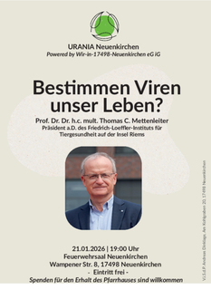 Über die „helle“ und die „dunkle“ Seite der Viren und die damit verbundenen Fragen wird Prof. Mettenleiter am Mittwoch, dem 21. Januar um 19 Uhr im Saal der Feuerwehr in Neuenkirchen, Wampener Straße 8 berichten.
