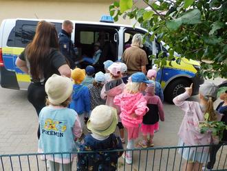 Zum Schluss wurde das große Polizeiauto mit Blaulicht und Sirene auf den Kindergartenhof gefahren und die Entdeckungskistenkinder hatten die Möglichkeit, es sich ganz genau anzuschauen, einzusteigen sowie das Blaulicht auszuprobieren. Ganz liebevoll und geduldig erklärten die drei Polizisten den Jungen und Mädchen, aber auch den Erziehern ihren Beruf und die Ausrüstung, mit der sie täglich arbeiten. Der Vormittag war für Groß und Klein ein besonderes, aufregendes Erlebnis.