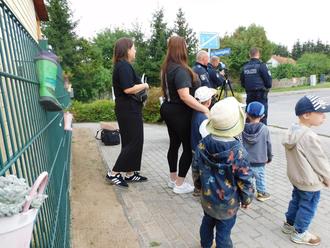 Am 10.09.2025 bekamen wir Besuch von Polizeihauptmeister Bilow, Polizeimeister Niebuhr und Polizeihauptkommissar Krosse. Diese laserten zunächst vor dem Kindergarten die vorbeifahrenden Autos und hielten diese an, wenn sie zu schnell waren, aber auch vorschriftsmäßig fuhren. Die Kinder des Kindergartens Entdeckungskiste begleiteten die Polizisten bei ihrer Arbeit und schauten ganz genau zu. Die Autofahrer bekamen von den Kindern selbst gemalte Bilder, die im Vorfeld vorbereitet wurden, überreicht. Sie freuten sich sehr über die Werke aber auch über die Aktion, die wir mit Hilfe der Polizei und des Wackerower Bürgermeisters Kai Dröse organisieren und durchführen konnten, und berichteten zum Teil von ihren eigenen Kindern und Enkelkindern. Sogar die „Raser“ freuten sich über die Aktion, bei der es darum ging die Autofahrer für besonders aufmerksames Fahren in der Nähe einer Kita zu sensibilisieren aber auch den Kindern den Beruf eines Polizisten näher zu bringen, und bedankten sich bei den Kindern für ihren „Strafzettel“.