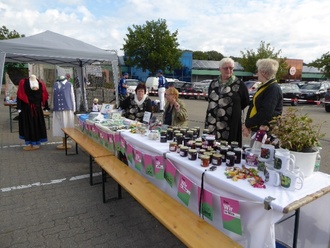 Internationaler Tag der Landfrauen. Taffe Frauen sind das, die Landfrauen. Auch in unserm Amtsbereich. Das wir haben in den letzten Wochen wieder recht deutlich gemacht. Der September hatte es in sich. Ereignisreiche Wochen liegen hinter uns. Da war zum einen der Tag der Vereine in Neuenkirchen. Da konnten, wollten wir nicht fehlen! Von heut auf morgen haben wir Infomaterialen unseres Verbandes organisiert und mit einen kleinen Stand Einblicke in unsere Arbeit gegeben unseren Verband präsentiert. Wir haben unsere Trachten, Handarbeiten und verschieden von uns hergestellte Fruchtaufstriche präsentiert. Es waren außergewöhnliche Aufstriche (Mahonie, Traubenkirsche, Honigbeere, Eberesche) - die wilden Früchte haben es uns noch immer angetan und fanden auch ihre Liebhaber.