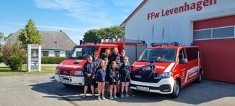 Beim diesjährigen Sommerfest in Levenhagen führte die Kinder- und Jugendfeuerwehr der Gemeinde ihr Können vor. Danach war die Überraschung groß. Durch eine Spende der E.DIS Netz GmbH konnten Hoodies für die Kinder und Betreuer beschafft werden.