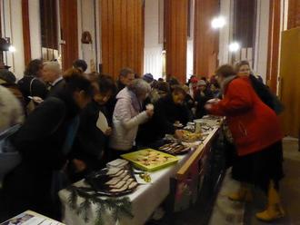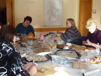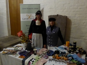 Gewisse Erfahrungen haben wir als Landfrauen auf diesem Gebiet. Na ja mehr der ehemalige Kreisverein, die Lubminer Gruppe. Wir haben nur hin und wieder personell mitgeholfen, bei Veranstaltungen für das Alfried Krupp Wissenschaftskolleg oder des Landkreises. Wir hatten diverse Erfahrungen durch das Fischerfest. Aber dat is schon all ne long tied her. Und wir sind leider alle nicht jüngere geworden. Die Befürchtung, daß das mehr als eine Nummer zu groß für uns ist, war nicht von der Hand zu weisen. Im Raum stand ja nur die Verköstigung von 250 - 300 Personen mit Schmalzstullen und Glühwein. Bei unserm Osterbrunch rechnen wir nur(!) mit 50 bis 60 Personen und würden uns freuen, wenn es denn doch ein paar mehr wären. Aber das steht auf einem anderen Blatt. Ein solches Catering machen auch wir nicht mehr mit links. Aber! Da gab es ja in der Nachbarschaft noch zwei Landfrauenvereine, der eine in Kiesow und der zweite in Grimmen. Gemeinsam hatten wir schon das große Landeserntedankfest 2019 auf Hiddensee gewuppt. Also haben wir zunächst selbst beraten und in Groß Kiesow und Grimmen angefragt. Auch hier wurde erst einmal nachgedacht und zugesagt. Auch mit dem Landesverband MV haben wir uns abgestimmt quasi als letzte große Aktion der Aktionstage des Deutschenlandfrauenverbandes „Land zukunft“. Wir hatten ja genügend Zeit uns vorzubereiten, zu klären, was, wieviel, woher wir die Brote, Schmalz usw. herbekommen, wo wir die Brote schmieren, wie wir sie in die Kirche bekommen und, und und.... Das Catering stand schon wenig wie ein Berg vor uns. Aber wir wollten nicht nur „Catern“, wir wollten auch uns als Verein präsentieren. Inzwischen ist die Landeshubertusmesse 2023 Geschichte. Veranstalter, Caterer und Gäste – alle glücklich. War ein hartes Stück Arbeit, ein sehr langer Tag und ein sehr beeindruckendes und nachwirkendes Erlebnis für uns als Akteure. Verteilt auf bereite Schultern haben wir uns als Regionalverband und Landfrauen insgesamt hervorragen präsentiert. Gemeinsam sind wir stark. Unsere Gruppe hat sich darüber hinaus mit unseren Trachten, diversen Handarbeiten, Fruchtaufstrichen und vielseitigem Infomaterial präsentiert und damit einen guten Einblick in die vielfältige Arbeit der Landfrauen gegeben. Fazit: Anstrengend, ja. Aber es hat auch viel Spaß gemacht nicht nur 200 sondern deutlich mehr Besucher der Hubertusmesse zu versorgen. Außer Schmalzstullen und Glühwein, gab es auch leckeren Kuchen und viele interessante Gespräche mit den Veranstaltern und Gästen. Das herzliche Dankeschön des Fördervereins der Kirche St. Marien “Es hat sehr gutgetan, so eine großartige Unterstützung zu haben“, geben wir an alle Akteure gern weiter.