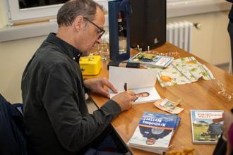Pünktlich um 19 Uhr nahm Herr Kreibohm in unserem gemütlichen Lesesessel Platz und begann aus seinem 2. Buch vorzulesen und erzählte sehr unterhaltsam aus seinem Leben. Wir erfuhren viel über seine Anfänge als Meteorologe und die verschiedenen Stationen in seinen Leben. In einer kleinen Pause nutzten viele die Chance, eines seiner beiden Bücher zu erwerben und sich signieren zu lassen. Die Zeit wurde auch genutzt, um sich neue Getränke zu kaufen und einige kurzentschlossene Einwohner erwarben noch unseren tollen Weitenhagen – Kalender! Nach der Pause ging es ebenso humorvoll und unterhaltsam weiter und am Ende waren wir uns alle einig, dass Wetter alles andere als langweilig ist und wir waren alle glücklich, dass wir bei diesem regnerischen Wetter unsere gemütlichen Zimmer verlassen haben, um uns im „Uns Dörphus“ so humorvoll unterhalten zu lassen.
