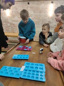 In der zweiten Woche machten wir wieder einen Ausflug nach Greifswald. Diesmal waren unsere Beine an den langen Fußmarsch gewöhnt. Wir besuchten das Caspar-David-Friedrich-Haus. Dort haben wir uns die Werke des berühmten Malers angeschaut, aber auch die alten Geräte, mit denen die Familien früher Kerzen gegossen haben. Vorher haben wir noch etwas richtig Cooles gemacht. Wir haben alle unsere eigene Seife gegossen. Wir durften uns die Farbe aussuchen. Es gab Schokolade, Lavendel, Orangen und noch viel mehr. Das war nicht anstrengend, aber sehr heiß. Denn bevor die Seife fest wird, macht man sie flüssig und gießt sie dann in die Formen, die sich jeder ausgesucht hat. Neben einer Löwenform gab es auch Muscheln, Herzen und lustige Clowns. An dieser Stelle noch einmal ein großes Dankeschön an unseren Förderverein, der die ganze Aktion finanziert hat. Wie in der Woche zuvor haben wir unser Mittagessen selbst zubereitet, diesmal waren wir Pizzabäcker. Wir haben den Pizzateig selbst geknetet, ausgerollt und belegt. Neben Salamipizza und Schinkenpizza gab es auch Kreationen mit Ananas. Natürlich alles mit Tomatensoße und Käse. Die Kinder und wir haben die Wochen sehr genossen und freuen uns auf die nächsten Ferien.