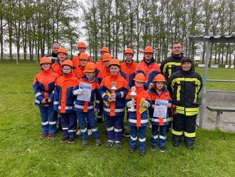 Am 06.05.2023 fand der Amtsausscheid der Jugendfeuerwehren des Amtes Landhagen statt. Auch wenn das Wetter nicht ganz mitgespielt hat und es nun doch regnete starteten 44 Kinder in 7 Mannschaften und kämpften um Bestzeiten und einen der begehrten Pokale.